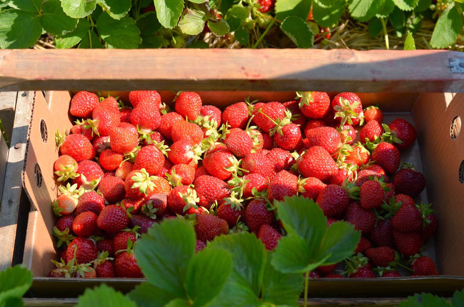 couldn't stop eating them when we returned to Grandma's house with our bushel. (It wasn't really a bushel, but it felt like a bushel...maybe it was more of a peck.) Either way, we went with the rinse-the-strawberries-and-eat-them-out-of-the-box route instead of making all that fancy stuff. Still delicious!